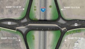 A diverging diamond interchange or DDI proposed by the Ohio Department of Transportation, the city of Findlay, and the Hancock County Engineer’s Office as part of the rehabilitation of the intersection of Interstate 75 and County Road 99 should…