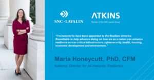 CALVERTON, Md., USA: Atkins, a member of the SNC-Lavalin Group, is pleased to announce its National Director for All-Hazards Resilience, Maria Honeycutt, PhD, CFM has been appointed to the National Academies of Sciences, Engineering, and Medicine’s (NASEM’s)…