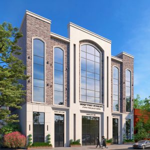 The 5,000-square foot sanctuary worship area, designed without columns or other obstructions, will feature a holy ark, 20-foot high coffered ceiling, stone tiles and high-quality millwork fabricated in Israel. Rendering courtesy of IMC Architecture …